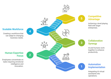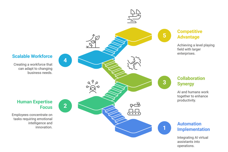 This collaboration creates a balanced and scalable workforce, one that operates around the clock, minimizes operational downtime, and adapts to changing business demands effortlessly. For smaller and mid-sized businesses, this synergy also levels the playing field, allowing them to compete with larger enterprises without the cost of expanding headcount.